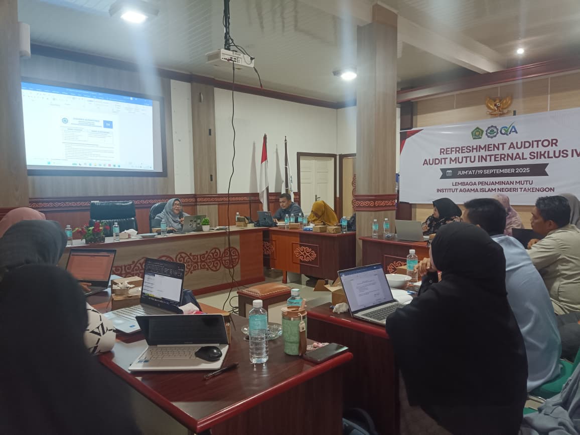 Lembaga Penjaminan Mutu (LPM) IAIN Takengon menyelenggarakan kegiatan Refreshment Auditor Audit Mutu Internal (AMI) Siklus IV Tahun 2025 pada Jumat, 19 September 2025. Kegiatan ini berlangsung di Ruang Rapat Pimpinan IAIN Takengon dengan menghadirkan dua pemateri yang berkompeten di bidang penjaminan mutu pendidikan tinggi.
